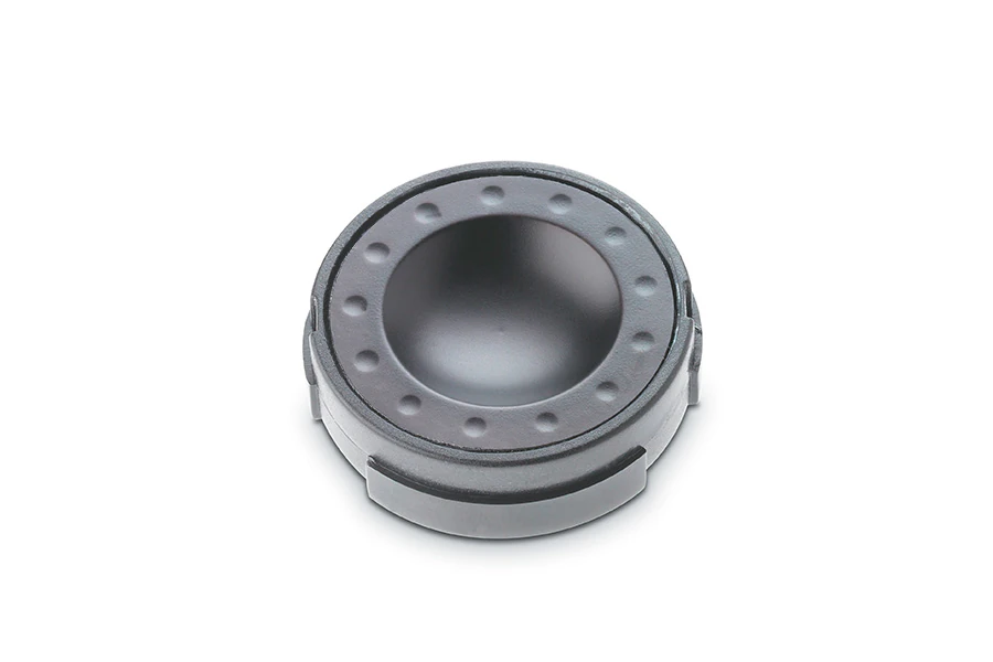 Tweeter em alumínio/magnésio com suspensão Poron, garantindo agudos suaves, baixa distorção e excelente integração com o driver de médios/graves.